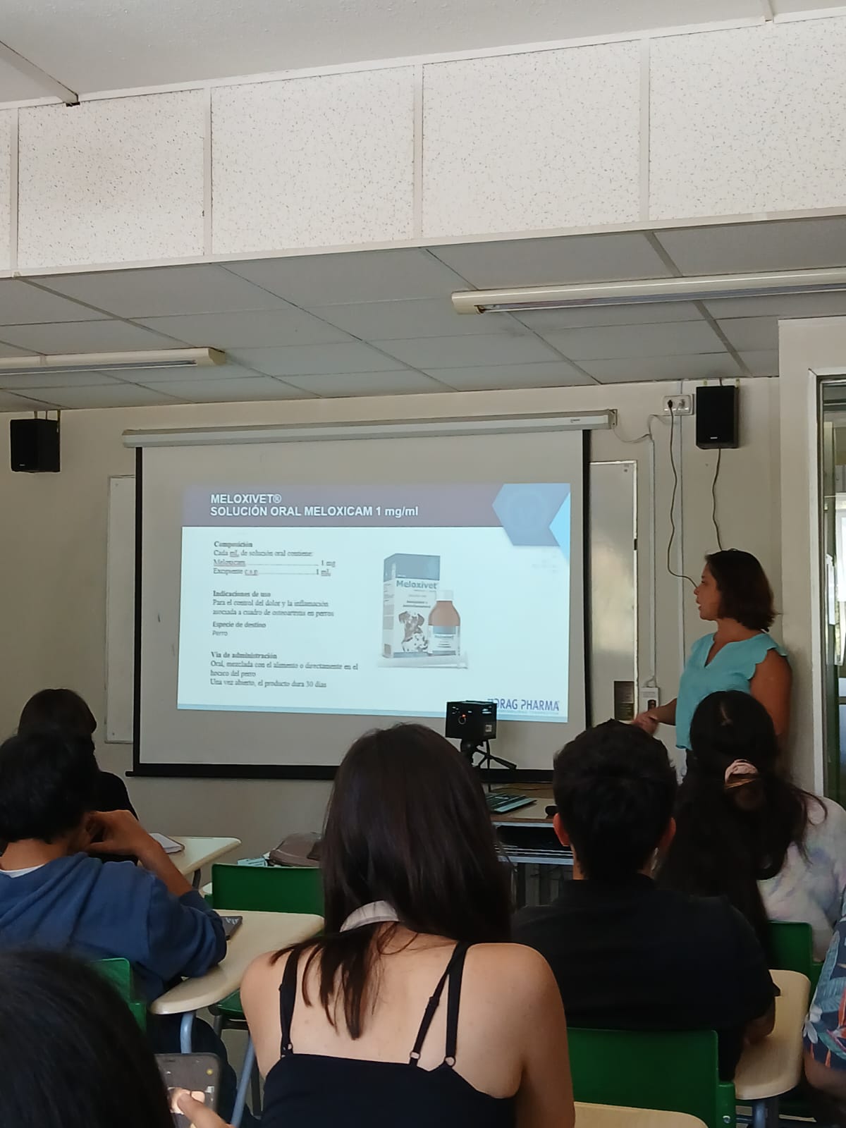 En esta ocasión, dos representantes técnicos de Laboratorio Drag Pharma, Denisse Paul y Santiago Suez, estuvieron presentes para impartir las charlas. Denisse presentó sobre el «Manejo del Dolor en Animales de Compañía», mientras que Santiago ofreció una conferencia titulada «Diagnóstico y Tratamiento de Enfermedades Fúngicas en Caballos».